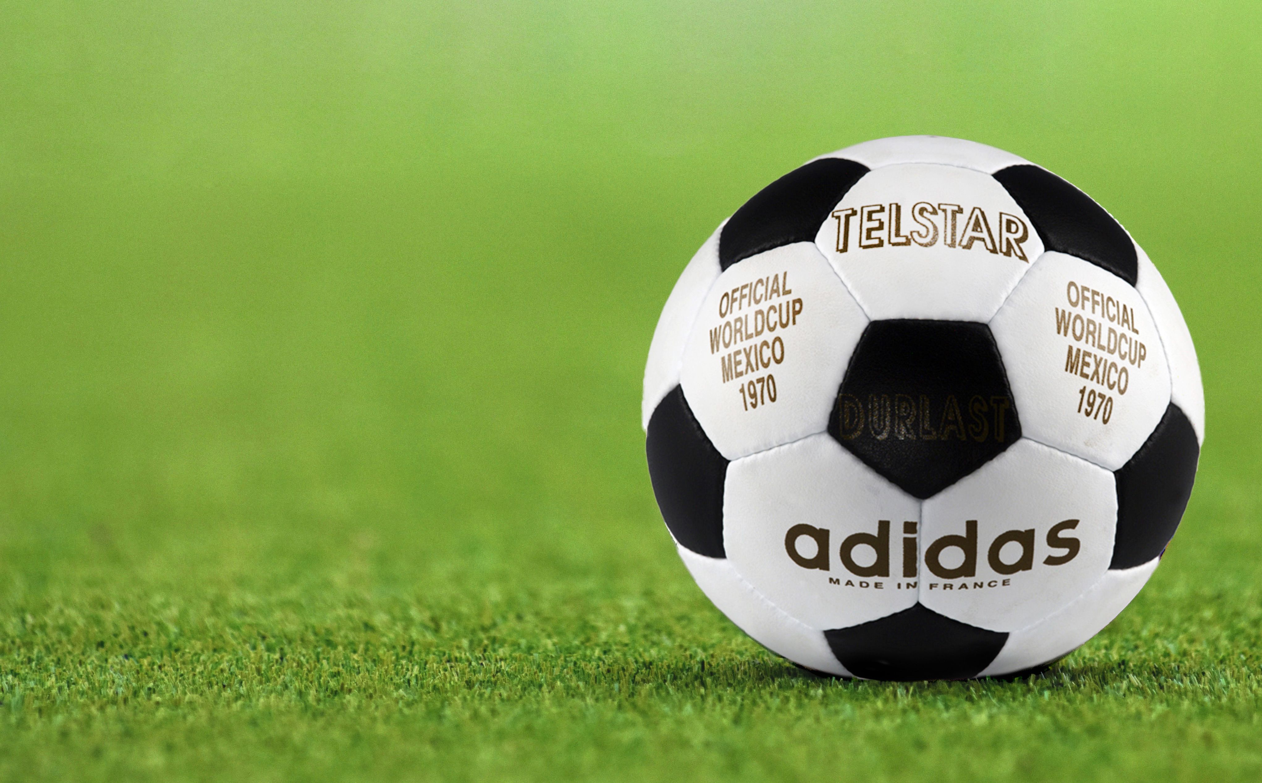 For its first FIFA World Cup, adidas created the world's most recognised football design. It featured 32 hand-stitched panels (12 black pentagons and 20 white hexagons) that made the ball a more perfect sphere and visible on black and white television for a worldwide audience. To this day, the design remains the football archetype.